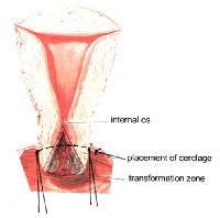 ولذلك يجب ربط عنق الرحم في الحالات السابقة لمنع الولادة المبكرة، وقد يوضع قطب أو غرز