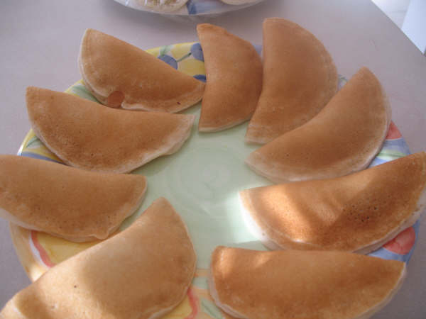 وفي القلايه نضع مقدار مغرفه صغيره في المقلى الغير قابله للالتصاق... تكون النار وسط وحتى ينشف شكلها وتحمر من جهه وحده فقط...