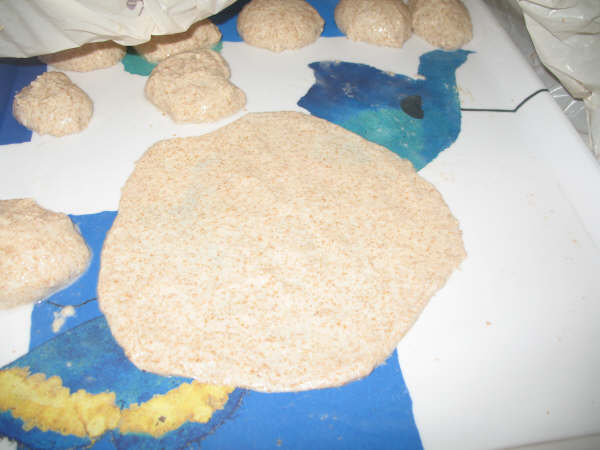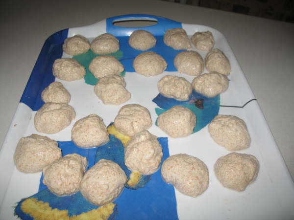 بس مويه وشوي ملح ودقيق بر وكوريها صغار مثل الصوره ..