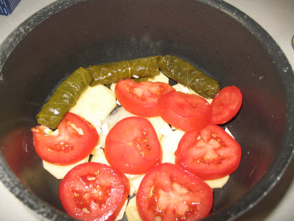 يوم صفيت ورق العنب وخلصته اخذت مكعب ماجي وذوبته بماء حار وزيت زيتون وبس صبيته ع ورق العنب وغطيته بغطاء اصغر من القدر وخليته ساعتين ع نار هاديه جدا