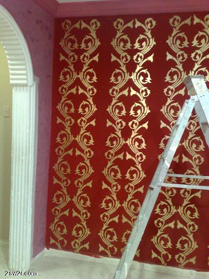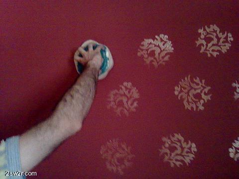 وعشان تطلع الطبعات توزيعها مرتب من الأفضل نقسم الجدار بشريط لاصق بهالطريقة