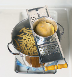 تقوم بفرد العجين ولها سلاح لعمل النودلز، السميك منه والرفيع، والنوع الكهربائي(الصورة السابقة) منها يمكنه عمل السباجتي وغيرها من أنواع المكرونة.