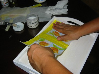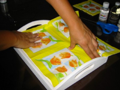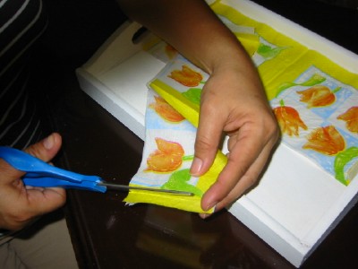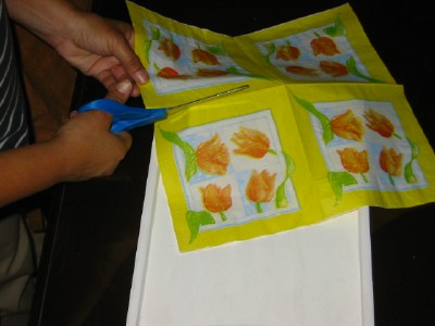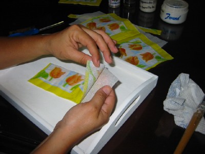 ثم توضع الصوره ( المناديل ) ويضغط عليها برفق حتى لايدخل هواء ولا تتقطع