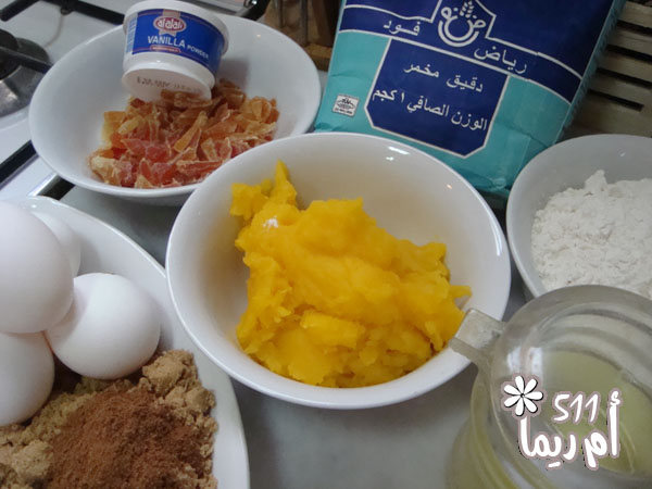 تخلط المقادير السائلة مع القرع المهروس لمدة 3 الى 5 دقائق