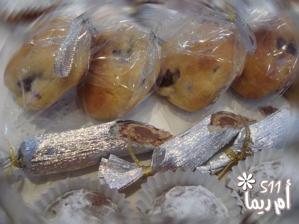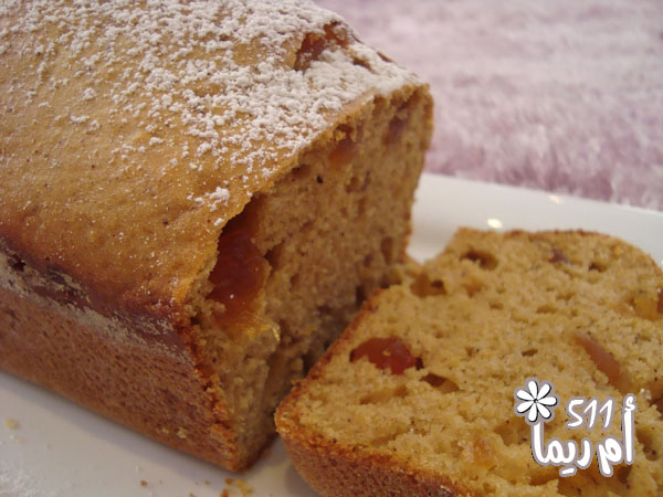 عندما ننتهي من الخفق يضاف الجوز ويخلط بالملعقة ثم يضاف في قوالب صغيرة او قالب كبير