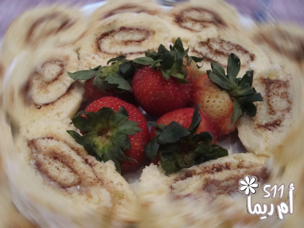 ثم قومي بلف الكيك على شكل رول اسطواني بالفوطة وادخليها الثلاجة مدة ساعة إلى 2 ساعة كاملة