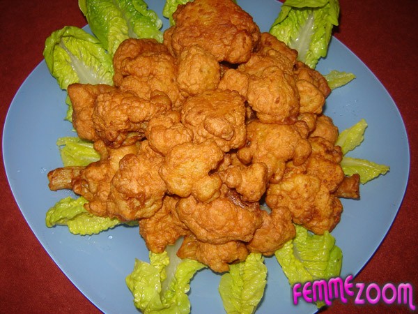 تغطس كل زهرة من القرنبيط في خليط الدقيق و البيض و الحليب بعدين توضع في الزيت الساخن و تقلى بعدين يقدم ساخن