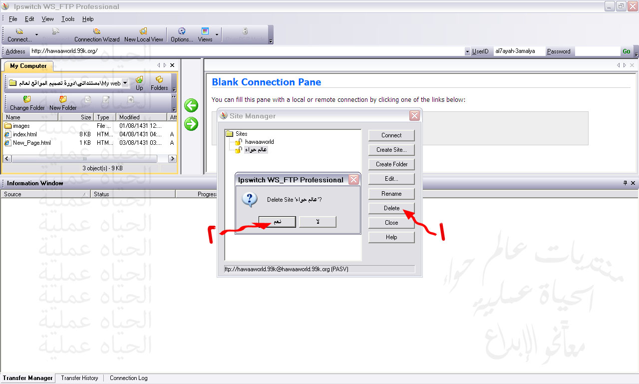 جزاك الله خير على هذا الدرس وهذه الدورة الرائعة والقيمة جعلها الله في ميزان حسناتك .. لكن عندي سؤال قبل تطبيقي للدرس السادس وهو اني إذا رفعت الموقع .. ثم بغيت أغير الموقع بموقع آخر .. كيف أحذف الموقع الأول وأحط بداله الموقع الجديد ؟ وشكرا لك :26:جزاك الله خير على هذا الدرس وهذه الدورة الرائعة والقيمة جعلها الله في ميزان حسناتك .. لكن...