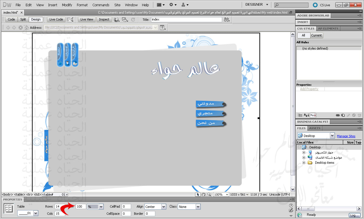 الحين ابي اعلمكم طريقة تخلون فيها التصميم يتوافق مع جميع مقاسات شاشات العرض يعني تصميم يكون ثابت ومرتب