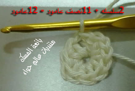 ارتفعت 2 سلسله وسويت جوا الدائره 12 غرزه نصف عامود يعني بلفه وحده