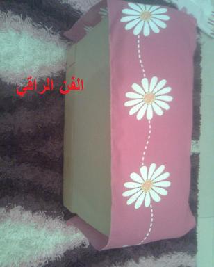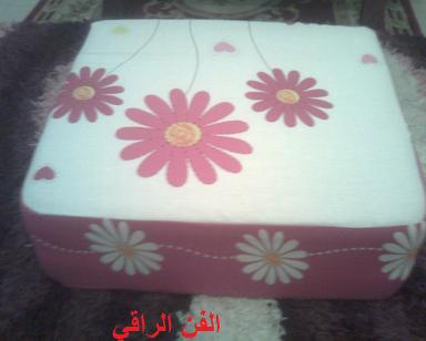 قصيت القماش على مقاس القاعدة من الأعلى من الأسفل من الجوانب مع الزيادة علشان...