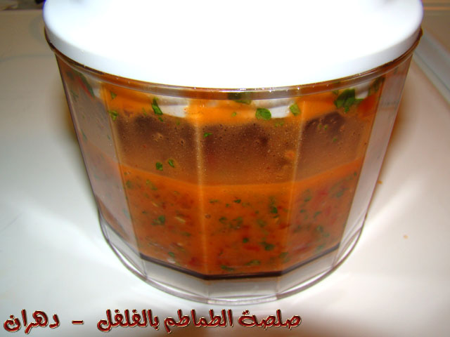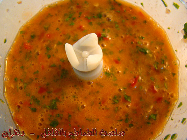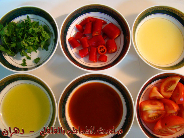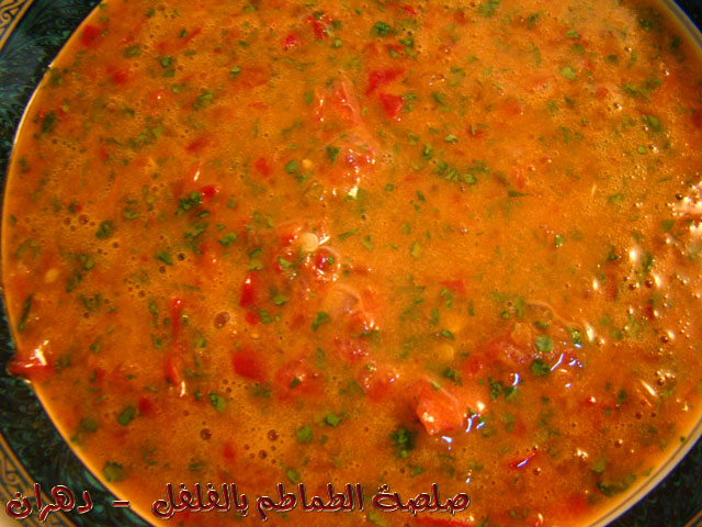 (( عصير ليمون , فلفل أحمر حار , بقدونس طازج مقطع , طماطم طازج مكتمل النضج , شطة حارة , زيت زيتون عصرة أولى ))