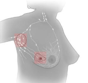 - ورم أو تثخن في الثدي أو تحت الإبط