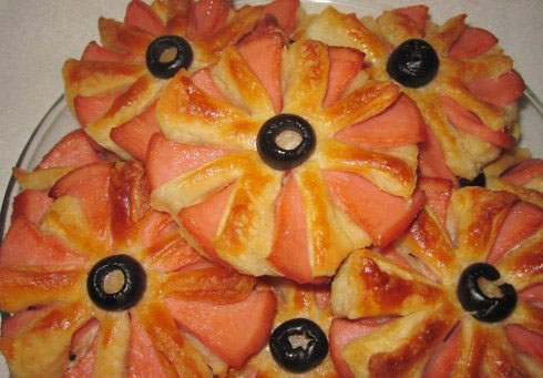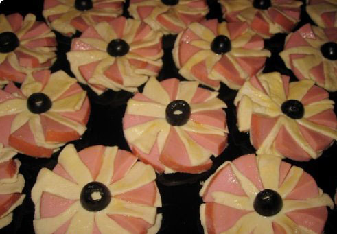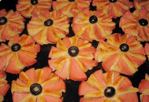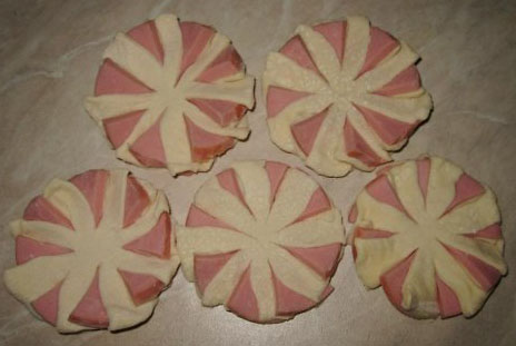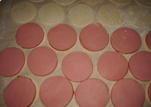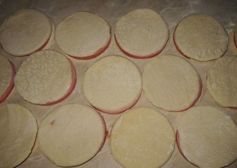 ونحط قطعة من اللانشون فوق العجينة وقطعة عجين بنفس الحجم فوق اللانشون