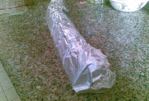 4- يرفع العامودين الجانبيين بالقصدير حتى يصبح مثل الهرم أو المثلث.