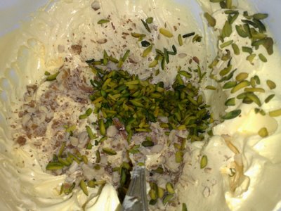 ( يمكن اضافة فستق مجروش و لوز او كاكاو بو دمعة الهرشي للكريمة حسب رغبتك )