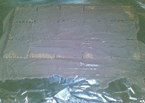 * نفرش ورق المنيوم ونغمس البسكويت بالحليب ونصفه بهذي الطريقه ( 3 صفوف يم بعض )
