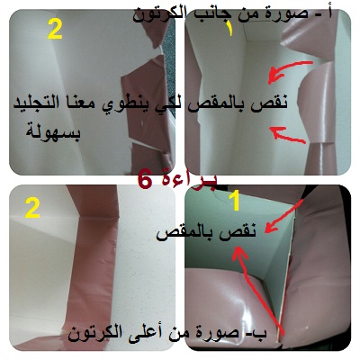 قص جانب الكرتون القص يكون إما مستقيما كما فعلته أنا بالصورة (3) أو ممكن نجعل القص منحني ولكن بشكل مستقيم أسهل وأسرع