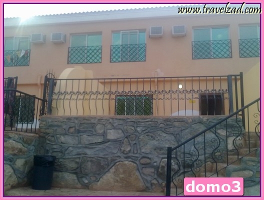 فله غرفتين نوم ومطبخ وصاله ولها حوش صغيرون ودرج تنزل منه على المنتجع مباشره سعرها بـ (500 ريال )