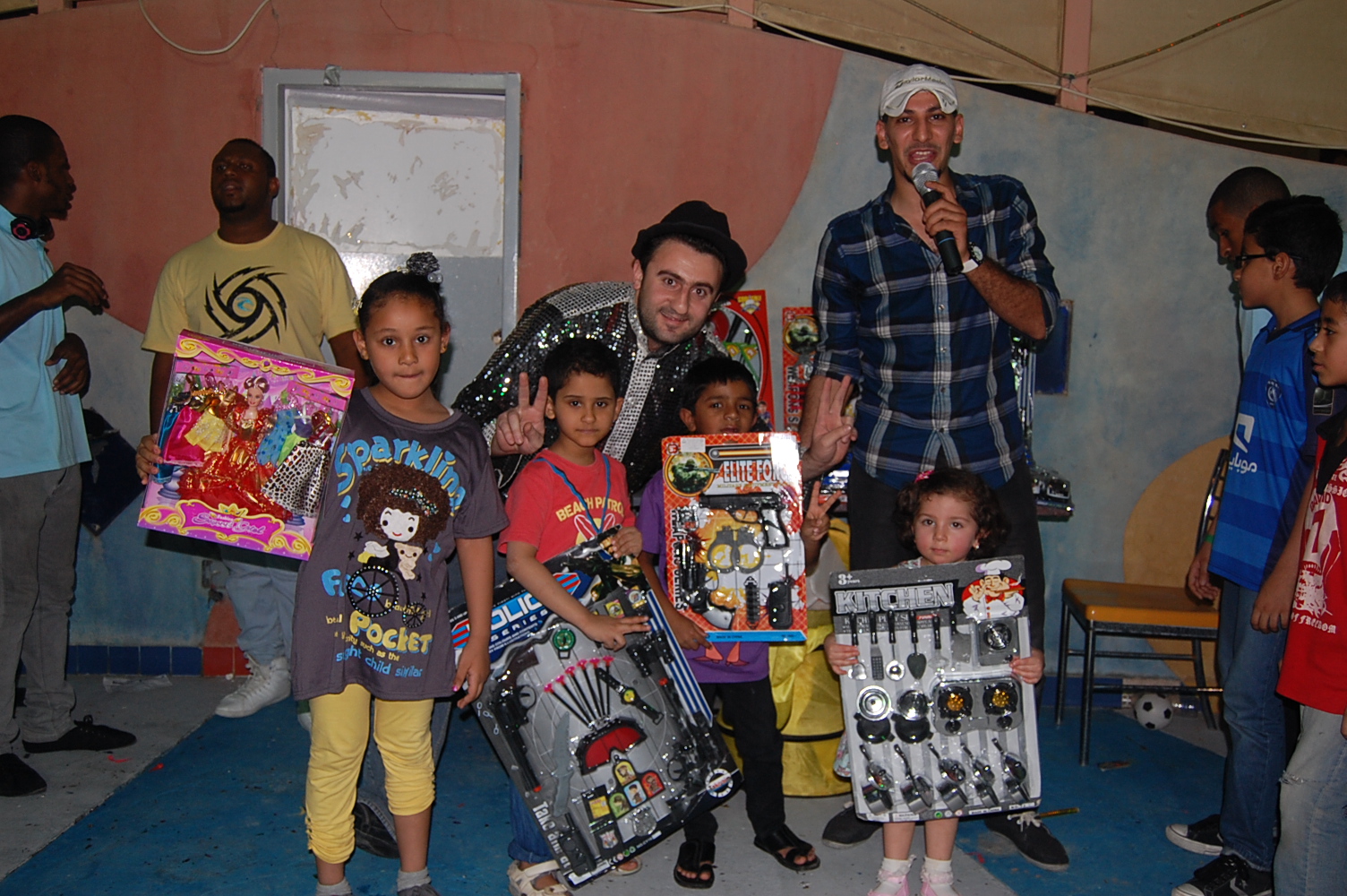 كانت عنواناً لكل ما قدم في الأمسية، بالإضافة إلى تقديم عدد كبير من الهدايا للأطفال والتي رسمت ا