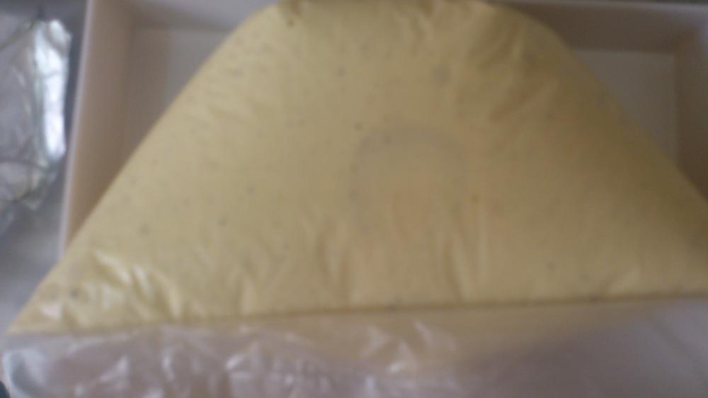ثم تغلف بكيس التغليف و وتوضع في الثلاجة لمدة ساعتين و يمكن استخدامها عادي بمجرد تقطيعها و لكن طعمها لما نحطها في الثلاجة يكون ألذ