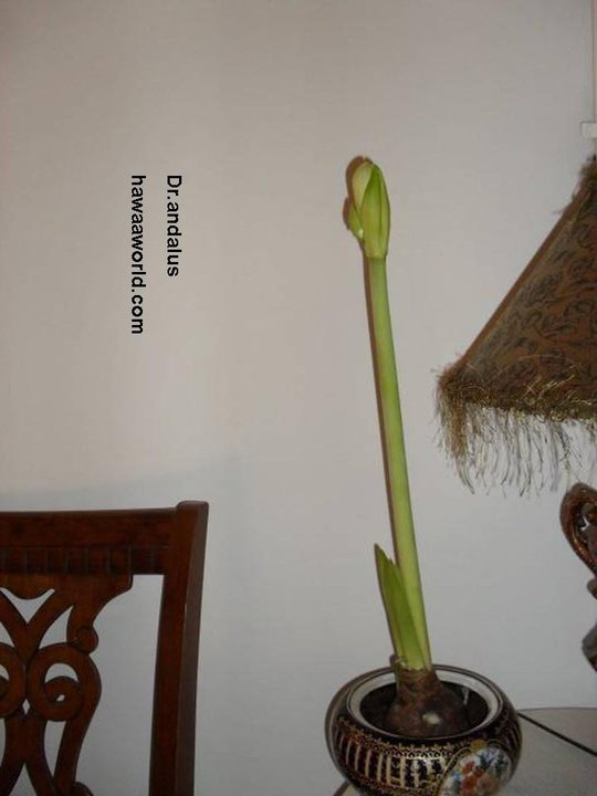 هذه ايضا أسميها البصلة العجيبة تنمو داخليا ويصل ارتفاعها 80 سم أو اكثر وتزهر بشكل طبيعي في ضوء الغرفة العادي وإن كان خافتا ,, وهنا يجب طرح معلومة مهمة ان الزهور بالاغلب الأعم يجب ان تتعرض لأشعة الشمس المباشرة لكي يصلها الضوء والحرارة الكافية لظهور الزهر ,, لكن مثل هذه الزهرة العجيبة لا نحتاج لأشعة الشمس ,, يخرج من البصلة عودي زهور كل عود عليه 3 زهرات ,, ايضا يوجد ألوان مختلفة من هذه البصلة ,, لا تحتاج عناية ممتازة جدا لحديثي تعلم زراعة ,, ولا تحتاج لكثير من الماء