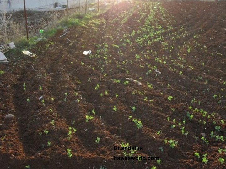 هذه مساحة كلها زرعت بازيلاء بإمكانك تحديد مكان في حديقتك بالبازلاء أو الفول أو غيرها وجميعها تزرع بالبذور ,, و الان الوقت مناسب لزراعتها