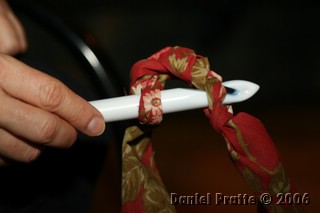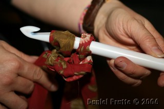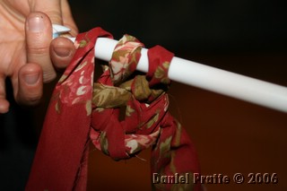 بعد العقدة نقوم بلف القماشة على الابرة
