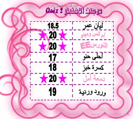 هذه قائمة بأسماء المتميزات في الاختبار 2