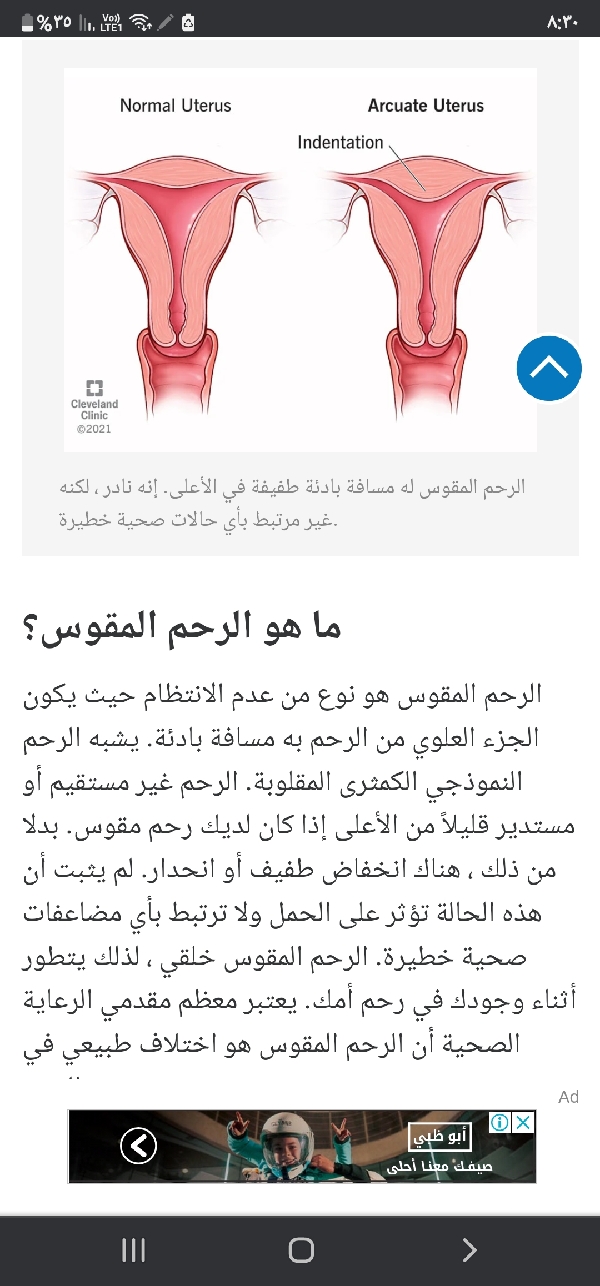 انا امس رحت عند دكتوره بس ماسوتلي سونار جلست تشوف الصور القديمه حقتي!! مره استغربت بس سلكت وانا رحمي شوي من فوق نازل يعني اسمه بالانقلش arcuate.. والدكتور عبدالعزيز الشهراني اول قالي ما يمنع الحمل كثير فيهم بس ما يعرفون الا بعد ثالث طفل. الزبده خوفتني مره! ييي انتي مابتحملي الا بالانابيب ولو حملتي ممكن عندك اسقاطات كثير ولو حملتي لازم تولدين بالسابع ولازم نعمل لك ربط وممكن لو حملتي ينفجر برحمك ونستأصل جزء من الرحم!!!! وانتي و انتي و انتي!! وقالت بسويلك رنين مغناطيسي عشان اشوف الرحم؟؟؟؟ خير رنين عشان رحم الحمدلله مافيني ذاك الشي المرعب احسها كبرت الموضوع جدددددداً حسبي الله عليها امس مانمت!!