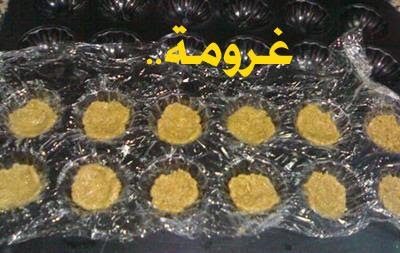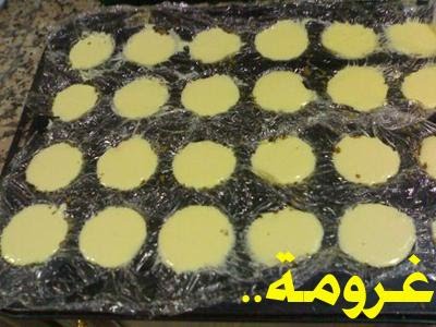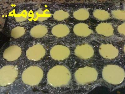 تأخرت لان الصينية اللي استخدمها ضايعة وهي خاصة للميني تشيز كيك قاعها مسطح ولحد الحين مالقيتها فاستخدمت صينية ثانية قاعها مقعر ومو عميقة كفاية واضطريت البسها بالنايلون واغير الطريقة لها عشان استخدمها ، اللي عندها الصينية مسطحة القاع نستخدم اوراق بليسة وترص البسكويت فيه وتدخلها الفرن بس تراعي ان كمية البسكويت قليلة جدا فما تحتاج الا 5-7 دقايق بس..