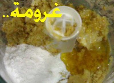 نضع مجروش البسكويت في وعاء العجن ونضيف الزبدة وملعقة العسل والسكر ونخلط حتى يتجانس مثل الصورة ..