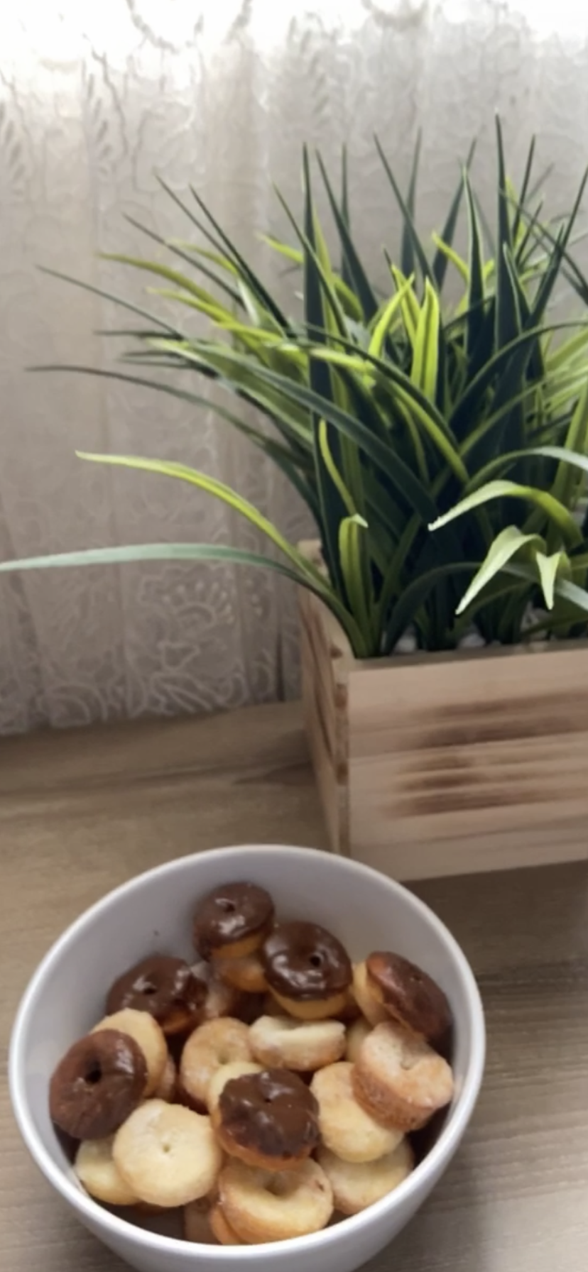 تخلط المقادير السايله مع بعض بعدها يضاف الدقيق لها الى ماتتكون العجينة ، واتركيها تخمر لمدة نص ساعة بالكثير ، واذا تخمرت العجينة كونيها على شكل الدونات واقليها في زيت حامي وغطسيها في صوص الكاكاو او السكر البودره وفي الثلاجة لحد ماتبرد وبالهنا وبالعافيه .