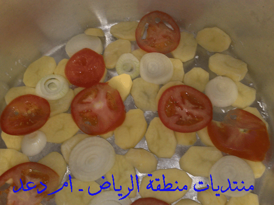 نجيب قدر نحط فيه حلقات بطاطس وحلقات بصل وحلقات طماطم