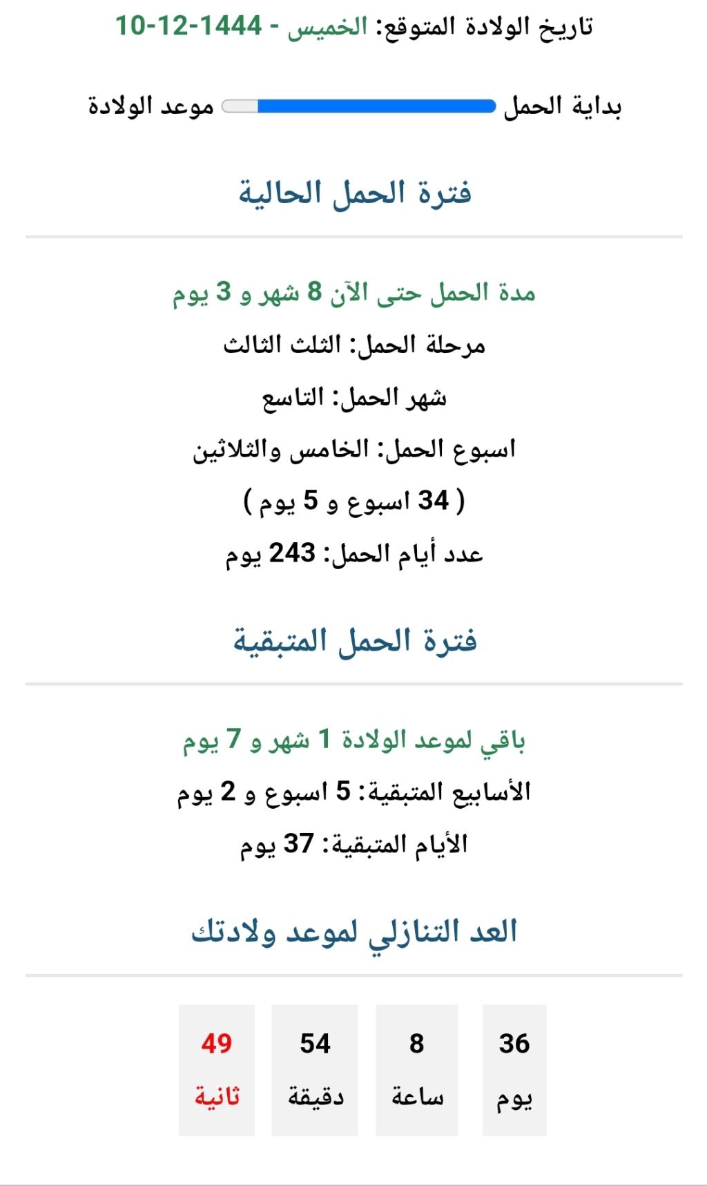 في تطبيقات تحسب لك موعد الولادة وفي مواقع في النت اذا ما تبين تحملين التطبيق تحطين التاريخ ويحسب لك..بروح اشوف لك موقع وبحسب لك