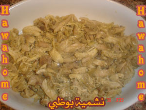 تقطع اثنتين من الطماطم قطع صغيرة وتطحن اثنتين منهما ثم يفرم البصل بالسكين كذلك الكزبرة تفرم بالسكين بعد قطفها ورقة ورقة و الثوم يدق بالهاون نضع البصل على النار إلى أن يذبل ثم نضع الثوم والطماطم المكعبات إلى أن يذبل يليه الطماطم المطحون حتى يأخذ اللون البرتقالي أو قريب منه ثم نضع عليه صدر الدجاج المقطع قطع صغيرة مع البهارات حتى ينضج حوالي ربع ساعة ثم نضع الكزبرة