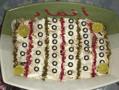 ثم تزين بالسماق والزعتر والليمون والكزبرة والزيتون