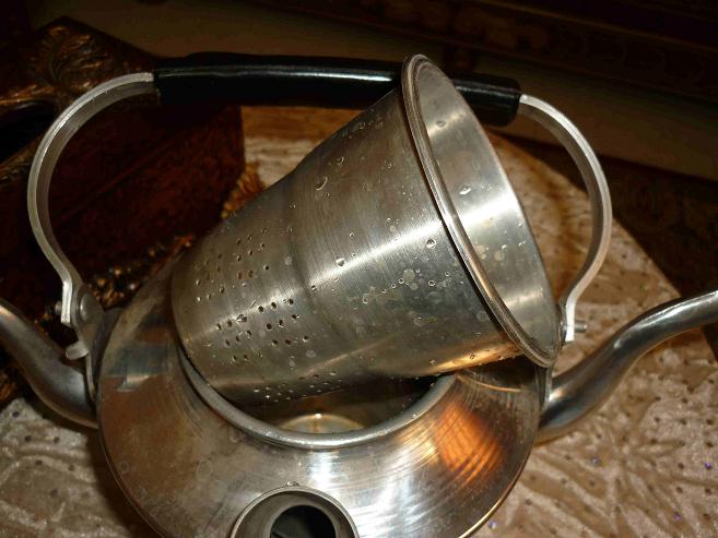 ضعيه على البراد الكبير المملوء بالماء ( لاحظو اللي فوق فيه شاي مويته قليله يعني بيكون الشاي أسود) واتركيه حتى تغلي المويه اللي تحت او حتى تطلع رائحه الشاي