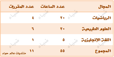ساعات, بحيث يدرس الطالب في كل فصل دراسي سبعة مقررات كمتوسط, ومقررات اختيارية, تساعده علي إبراز طاقاته وتنمية ميوله