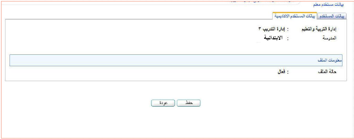 تحتوي هذه الصفحة على المعلومات الشخصية الخاصة بك والتي تم تعريفها عند إضافة ملفك إلى المنظومة، مثل الاسم الكامل والعنوان