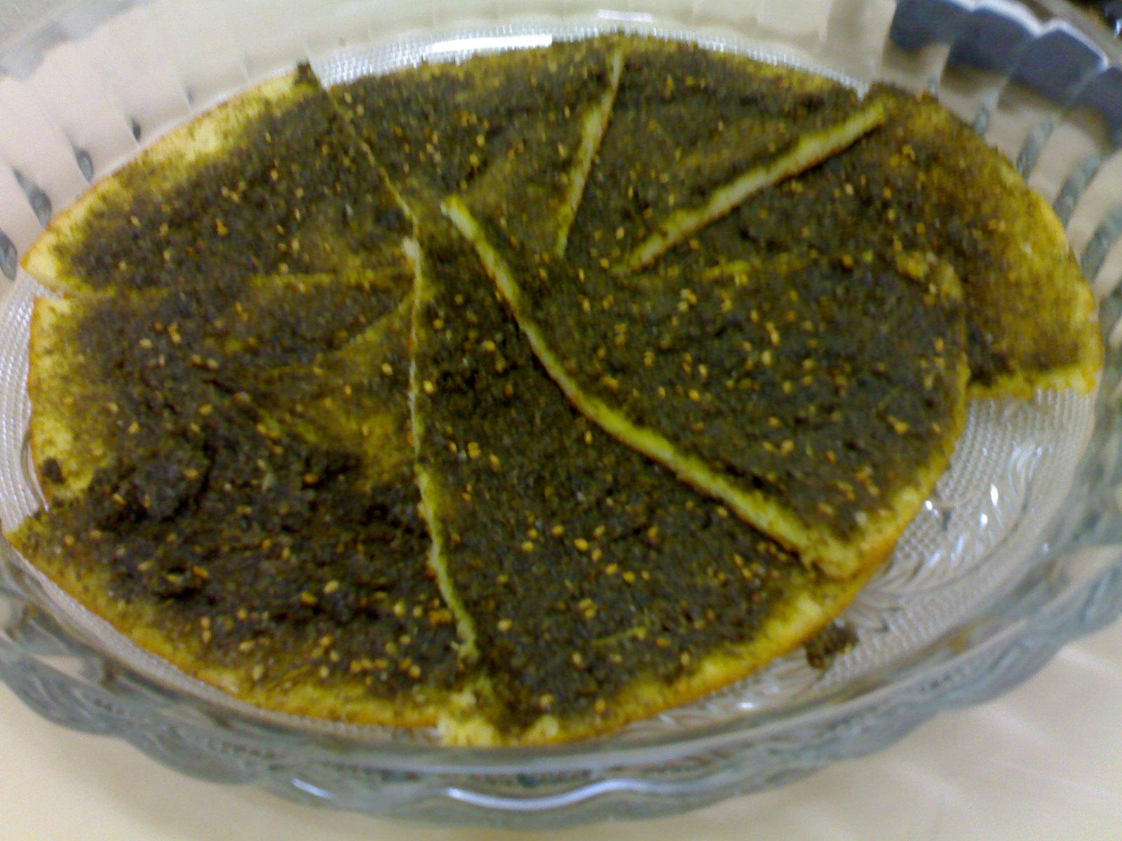 فطاير الزعتر حطيت كمية كبيرة زيت زيتون صبيتها طبعا اصبها بلملعقة عشان ما تتقطع العجينة الرقيقة بالصينية وبعدين كبيت كمية محترمة برضو زعتر وماتاخذ وقت كبير بالفرن