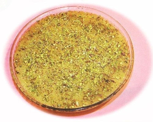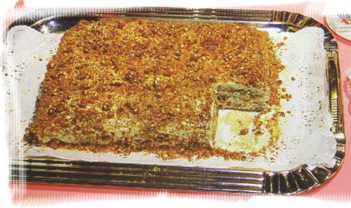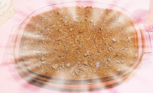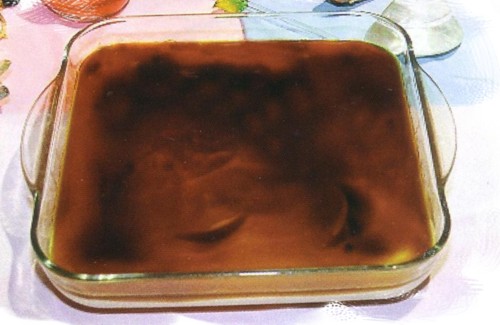 بعد ذلك نصب الخليط على كمية الدقيق ونخلط بالخلاط حتى تتكون عجينة(بتكون العجينة قريبة من سماكة عجينة الكيك)