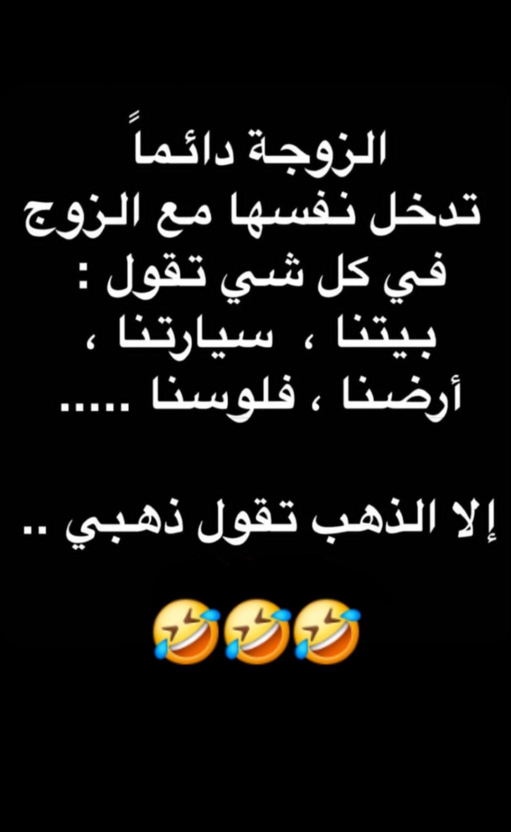 ههههههه🤣🤣🤣 شكل إللي مسوي هالنكتة حاط عينه على ذهب زوجته 🤣💔ههههه ومنطقيًا كل الأشياء المذكورة قابلة للمشاركة الزوجية💕 فيها إلا الذهب يعني بيلبسه معاها هههههههه😜🤷🏻♀️🤣❤️🌹ههههههه