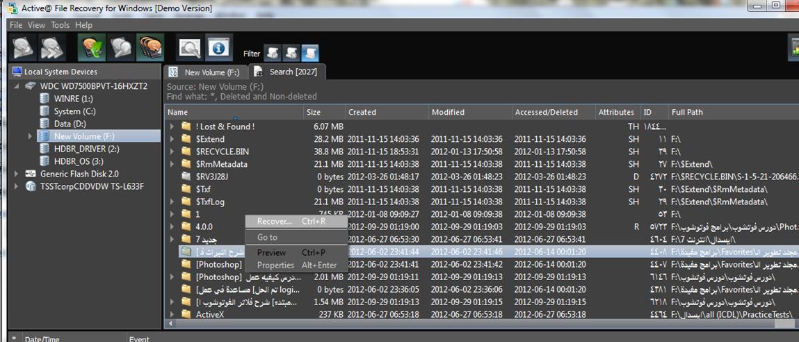 اول ماتحمليه وتعملي له تسطيب دخلي هارديسك بيظهر لك على جانب الايسر من شااشة البرنامج اسماء محركات اختاري رمز محرك وبالزر الايمن اختاري سيرش وشفي هل بتظهر لك ملفات اذا ظهرت لك ملفات