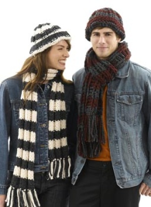 الباترون للطاقية و الكوفية Additional Materials Size 13 (9.00 mm) 16-inch [40 cm] circular knitting needle or size to obtain gauge (hat) Size 13 (9.00 mm) double-pointed needles (hat) HAT BRIM With A, cast on 48 sts. Join and place marker for beginning of rnd. Rnds 1-4 With A, (k 3, p 3) around. Rnds 5-8 With B, (k 3, p 3) around. Repeat Rnds 1-8 until piece measures 6½ in from beginning. CROWN Notes Continue alternating 4 rows A, 4 rows B. Change to double-pointed needles when necessary. Rnd 1 (K2tog, k 1, p 3, k 3, p 3) 4 times – 44 sts. Rnds 2, 4, 6 and 8 Knit the knit stitches and purl the purl stitches as they face you. Rnd 3 (K 2, p 3, k2tog, k 1, p 3) 4 times – 40 sts. Rnd 5 (K 2, p2tog, p 1, k 2, p3) 4 times – 36 sts. Rnd 7 (K 2, p 2, k 2, p2tog, p 1) 4 times – 32 sts. Rnd 9 (K2tog, p 2, k 2, p 2) 4 times – 28 sts. Rnd 10 (K 1, p 2, k2tog, p 2) 4 times – 24 sts. Rnd 11 (K 1, p2tog, k 1, p 2) 4 times – 20 sts. Rnd 12 (K 1, p 1, k 1, p2tog) 4 times – 16 sts. Rnd 13 (K2tog) 8 times – 8 sts. Cut yarn leaving a long tail. Thread tail into large-eyed, blunt needle and weave it through remaining stitches. Pull all stitches tightly together and then fasten securely and weave in ends.SCARF With A, cast on 17 sts. Row 1 Slip first st, k 3, p 3, k 3, p 3, k 4. Row 2 Slip first st, knit the knit stitches and purl the purl stitches as they face you. Rows 3-6 Repeat Rows 1 and 2 twice. Change to B and repeat Rows 1-6.Change back to A and repeat Rows 1-6. Continue in this manner, changing colors after every 6 rows, until piece measures approximately 66 in or desired length, ending with a 6-row repeat of A.Bind off loosely and weave in ends.FRINGECut 10 in strands of yarn, 18 of each color. Place 1 strand each of A and B together and fold in half. Use crochet hook to pull loop through first st, draw ends through loop, and snug loop up against fabric of Scarf. Continue in this way, placing fringe through every other stitch at top and bottom (short sides) of Scarf. ABBREVIATIONS / REFERENCES k = knit k2tog = knit 2 together p = purl p2tog = purl 2 together rnd(s) = round(s) st(s) = stitch(es) tog = together الباترون SCARF With A, cast on 18 stitches. Work in garter stitch for 6 inches. Break off A. With B, work in garter stitch for 6 inches. Break off B. Continue alternating between Colors A and B until 15 stripes have been worked, ending with A. Bind off to match cast on. Weave in all ends.الباترون للطاقية و الكوفية Additional Materials Size 13 (9.00 mm) 16-inch [40 cm] circular...