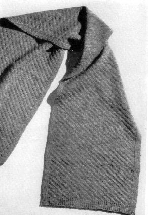 These 6 rows form pattern of scarf. Repeat these 6 rows until work measures 39 inches, then change to No. 3 Needles and work in ribbing for 1 inch, bind off.
