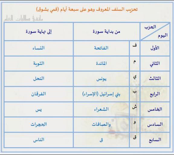 وافضل ان تكون بداية الختمة السبت ونهايتهاالجمعة وتختم اخرساعة في يوم الجمعة للتوافق ساعة الاجابة