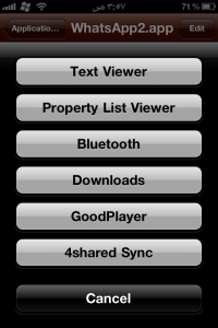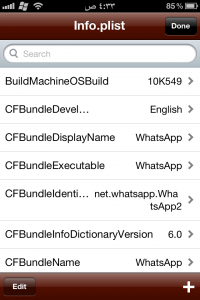 و عند الانتهاء من الكتابه نرجع الى الخلف من ثم نضغط على done و عند الانتهاء نخرج من برنامج ifile و نعمل respring للجهاز او اغلق ثم افتح الجهاز و سوف تلاحظ ان هنالك واتس اب جديد في القائمة ادخل عليه و تمتع ..!!