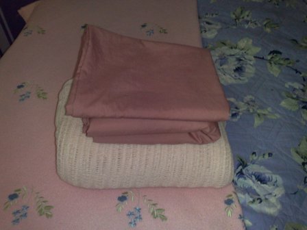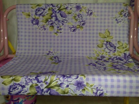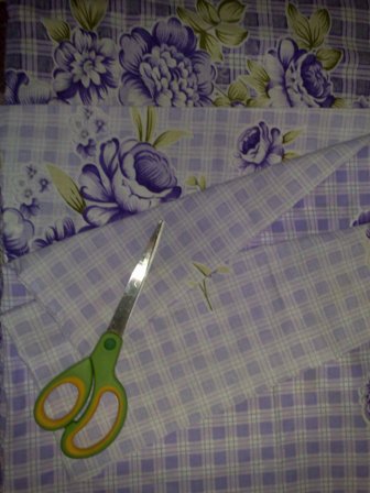 اخذت الشرشف اللي سويته لريم من بقايا الستارة وقصيت اربع مربعات