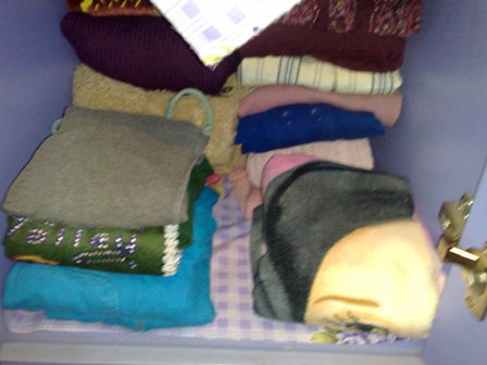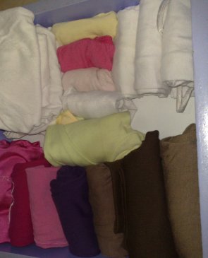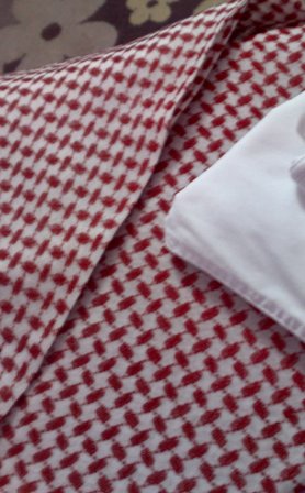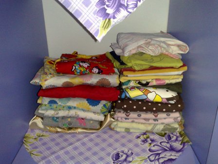 وعملتهم مفارش للرفوف بعد ما خيطت الاطراف
